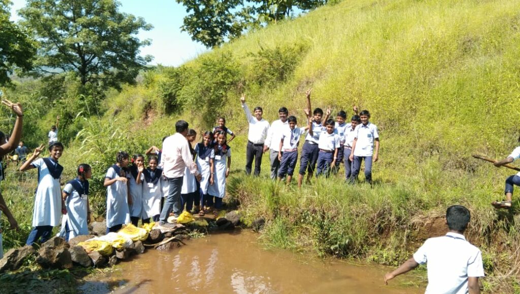 न्यू इंग्लिश स्कूल केळोली विद्यालय परिसरातील ओढ्यावर शनिवार दिनांक: ७-१०-२०२३ रोजी वनराई बंधारे बांधण्याचा उपक्रम राबवण्यात आला.