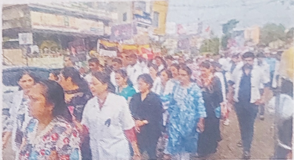 प्रशिक्षणार्थी महीला डॉक्टर वरील अत्याचाराविरोधात कराड येथे निषेध मूक मोर्चा.