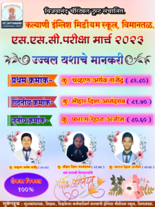 कल्याणी इंग्लिश मीडियम स्कूल, विमानतळचा दहावीचा निकाल 100 टक्के. पन्नास टक्क्याहून अधिक विद्यार्थ्यी विशेष प्राविण्य श्रेणीत. June 3, 2023